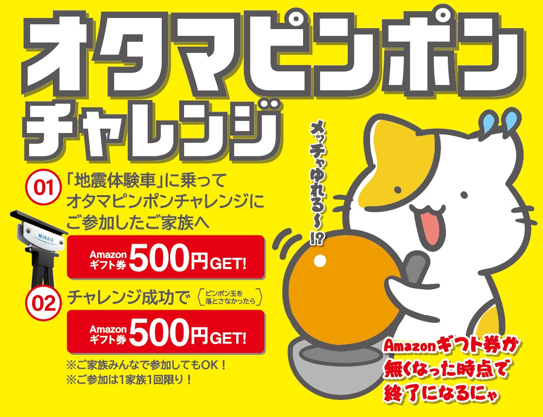 ⑤オタマピンポンチャレンジに参加して、ピンポンを落とさなければ、アマゾンギフトカード500円。