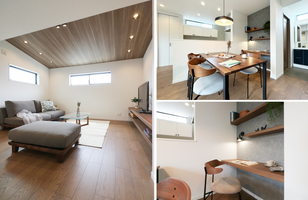 こちらのお家は、リビングが勾配天井になっており、開放感を感じられます!
