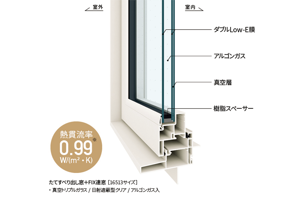 高い遮音性・防音性と断熱性能を実現した、窓を用いました。外からの騒音や、近所の生活音など、気にせず過ごせます。室内の生活音も漏れにくく、近所迷惑を心配しなくてすみます。また高い断熱効果で、夏も冬もいつも快適に過ごせ、冷暖房費用を抑え、電気代の節約につながります。