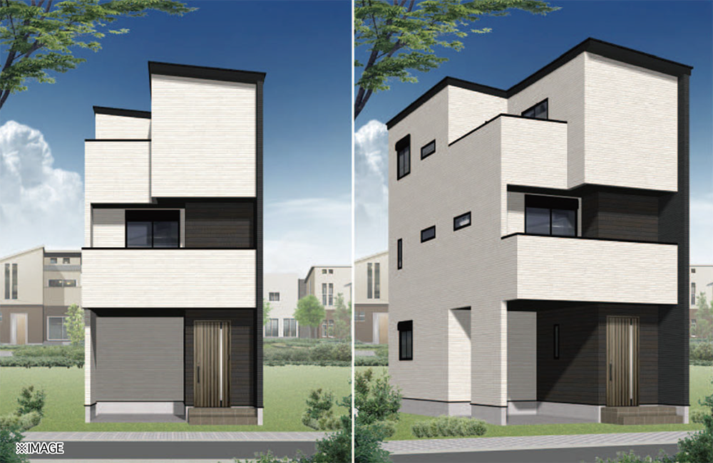 外壁のベースをナチュラルなホワイトのサイディングに、アクセントでブラックやダークな木目調のサイディングを取り入れ外観全体を引き締めました。道路に面した立地のため、人目につく外観をどの角度から見ても、かっこよくスタイリッシュに見えるようデザインされています。