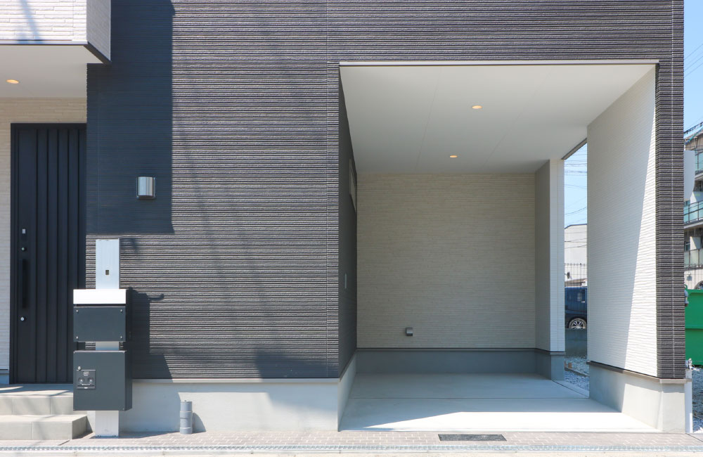 雨風の強い日でも、大切な車を安心して駐車できるインナーガレージ。大切な自転車やアウトドア用品も、雨にさらさずに保管できます。また防水コンセントと水栓を設けているので、高圧洗浄機を使っての洗車や、玄関廻りの清掃もラクチンです。