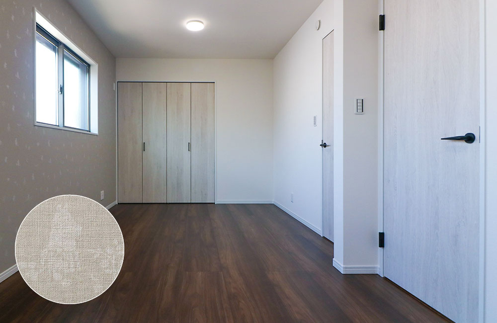 3Fには、お子様の成長にあわせて、2つに変更出来る9.0帖の部屋を設けました。子どもが小さい時は、ご家族で一緒に寝られるファミリースペースとして使用ができ、子どもが成長し、それぞれの部屋が必要になった時は、2つの部屋を分けることができます。またムーミンがキラキラと浮かび上がるかわいいクロスなど、子どもが喜ぶ遊び心も、さりげなく取り入れました。