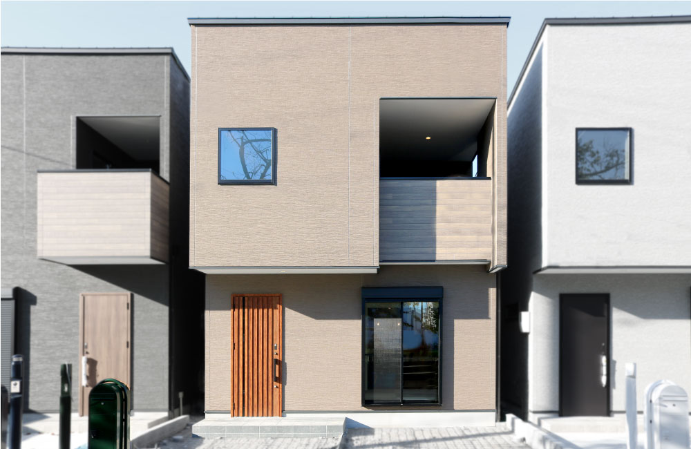 シンプルなフォルムにダークブラウン×木目のサイディングを組み合わせることで、木の持つ温かみと風合いを感じられる、シックで落ち着いた風合いに。飽きることなく暮らしていける外観です。