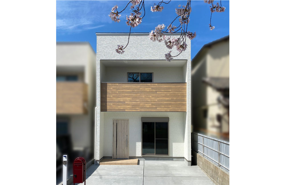 コロンとかわいい、ハコみたいな外観。ホワイトに木目のさわやかであたたかみのある色合いは、愛着を持って住んでいただける、シンプルで飽きの来ないデザインです。