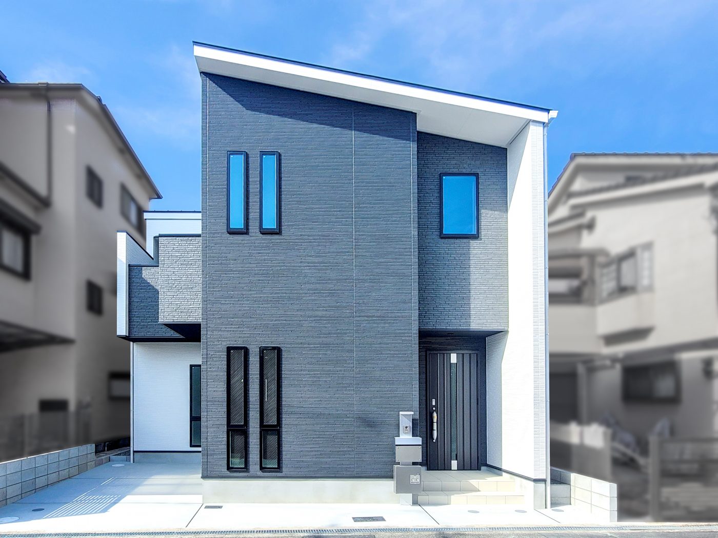 プライバシーに配慮しながら採光を得られるよう、縦スリット窓でデザインし、黒×白×グレーでまとめたシンプルモダンでスタイリッシュに仕上げました。