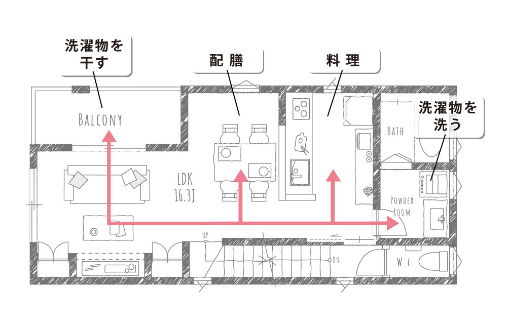 • 家事がスムーズになる。コンパクトな水廻り動線
