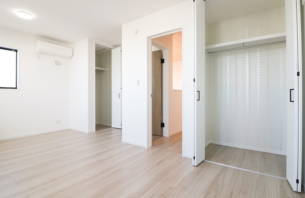 3Fには、将来2つに分けられる、ドアと収納を2つ設けたお部屋をご用意しました。子どもが小さいときは、家族みんなで寝たり、1つの部屋でのびのび遊んだり。子どもが成長してからは、家具で間仕切ったり、壁を設ければ、各自が勉強に集中できる環境をつくれます。働き方が変化して、リモートワークが必要になっても、自宅に仕事部屋が確保できるのも嬉しいポイントです。