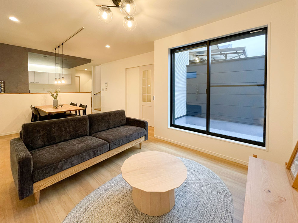 自然とモダンが融合した心地よいくつろぎ空間を備えた、ナチュラルモダンな住まいが完成しました。3階に設けられた大きめの窓があるヌックでは、ベンチに座りながらコーヒーを片手に外の風景を眺めたり、ゆっくりと読書を楽しんだりすることができ、ほっとする至福のひとときを過ごすことができます。また、外部からの視線を遮りプライバシーが守られたリビングは、ご家族がのびのびとくつろぐことができる心休まる空間です。2階に水廻りをまとめ、同じフロアにバルコニーがあるので、洗濯物を持って階段を上り下りする手間を省き、毎日の洗濯をラクにこなすことができます。さらに、ファミリークローゼットやパントリーなど、適材適所に十分な収納スペースをもうけ、整理整頓しやすく、いつでもスッキリ片付く快適で機能的な住まいになりました。
