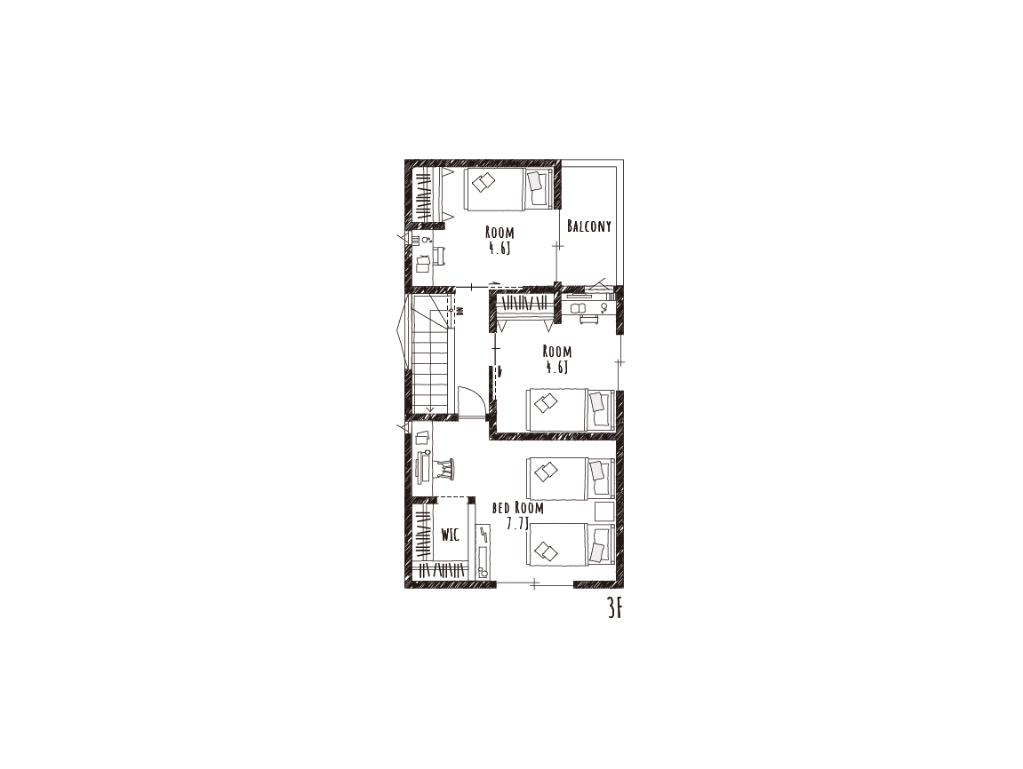 1階廊下の洗面脱衣室前に、家族で使える共用のウォークインクローゼットを設置しました。衣類やタオルをすっきりと収納できるほか、パジャマや下着をまとめて保管しておけば、お風呂の準備もスムーズに進みます。家族みんなの暮らしをより快適にする、便利で機能的な収納スペースです。