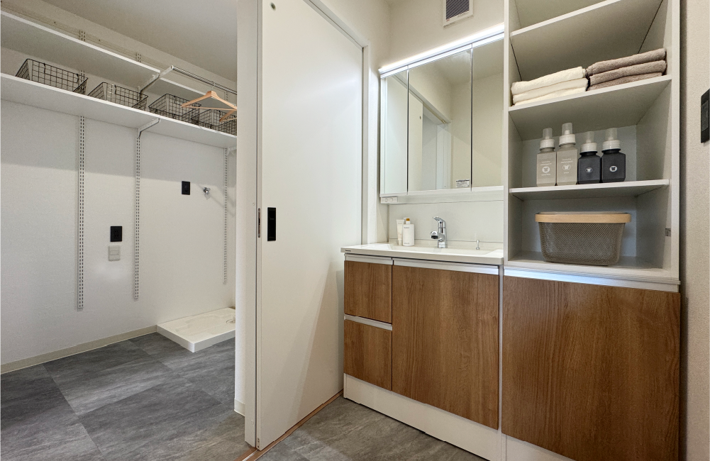 • ランドリー収納がある洗面室