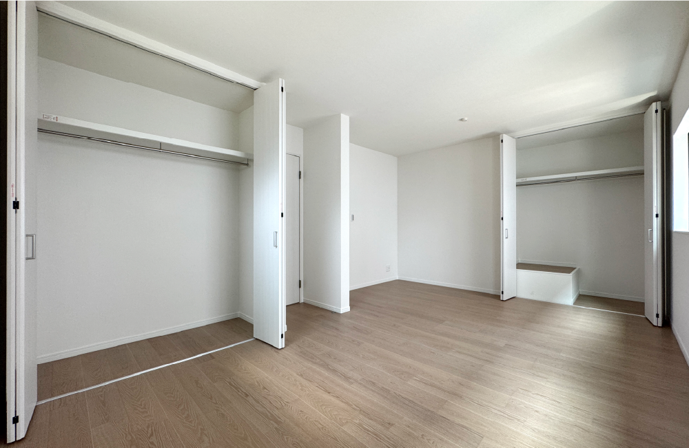 3階には、将来的に仕切ることができるお部屋をご用意しました。お子さまが小さいうちは広々とした一つの空間として一緒に使い、成長に合わせて各々のお部屋が必要になったときには、壁を設置できるように下地やドア、収納、エアコン用コンセントなどをご用意しています。