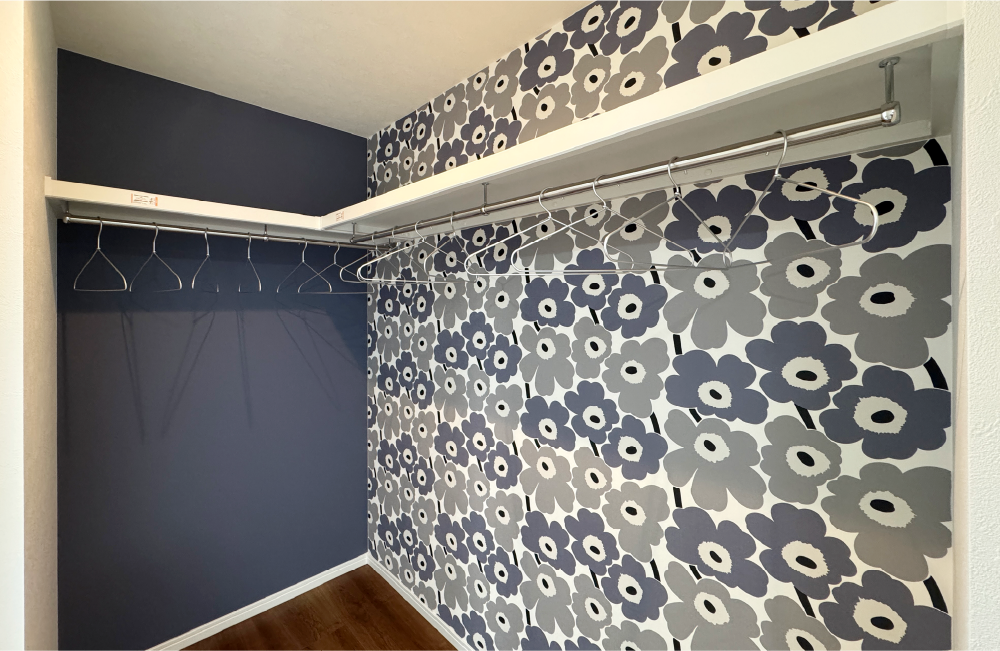 3階の2部屋からアクセスできるウォークインクローゼットは、プライバシーを保ちながら広々とした収納スペースを共有できる便利な設計です。2人分の衣類や小物もゆとりを持って収納でき、居室をいつもスッキリと保てます。