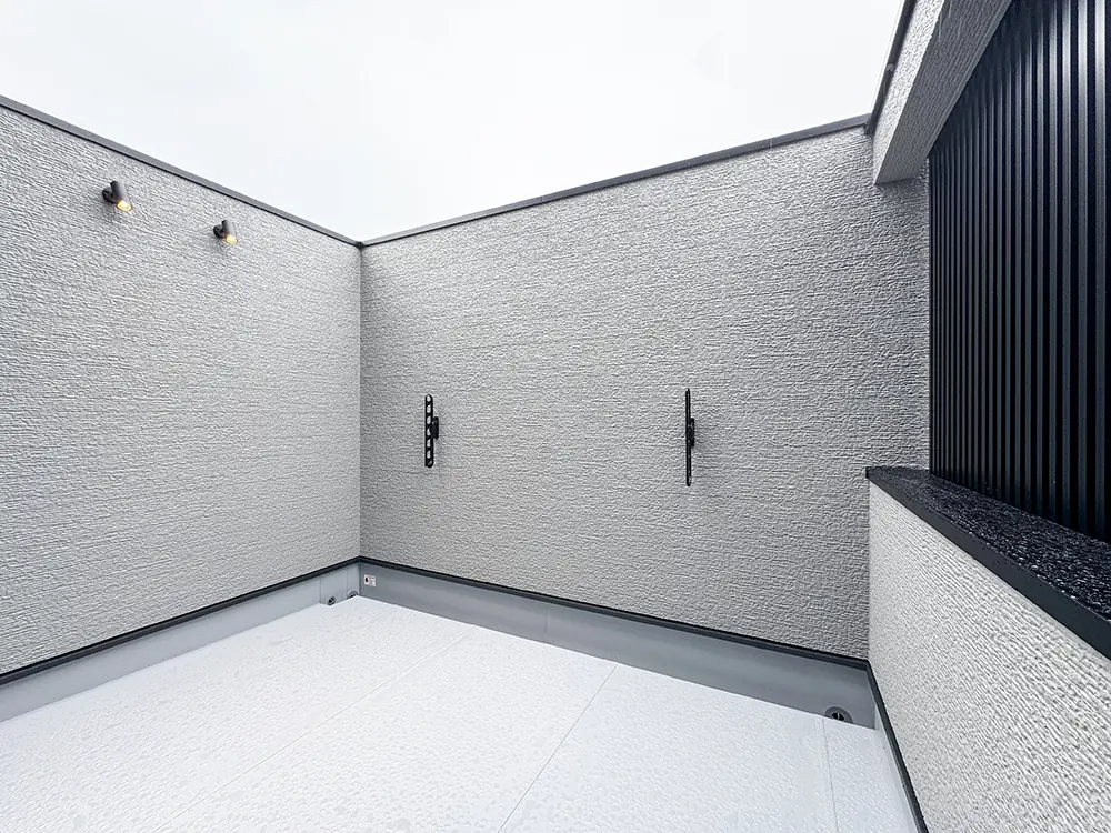 2階の南側に配置された約6帖の広々としたバルコニーは、アウトドアリビングとしても利用できる気持ちのいい空間。休日に遅めのブランチをとったり、コーヒーを飲みながら本を読んだり、夏にはプール遊びをしたりと洗濯物を干すだけでなく多目的に活用できます。