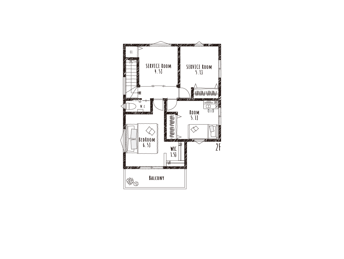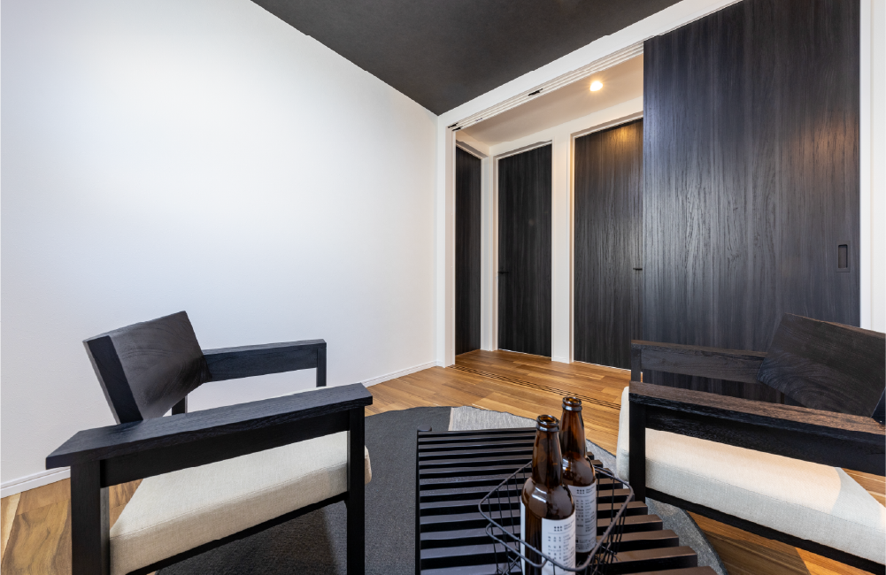 2階に上がってすぐのサービスルームは、暮らしを支える便利なスペースとして活用できます。天候や時間を気にせず、たっぷりの洗濯物を干せるランドリースペースとして使えるほか、収納棚を設ければ、季節家電や日用品のストックをまとめてしまえる家族共用の収納スペースとしても活躍します。