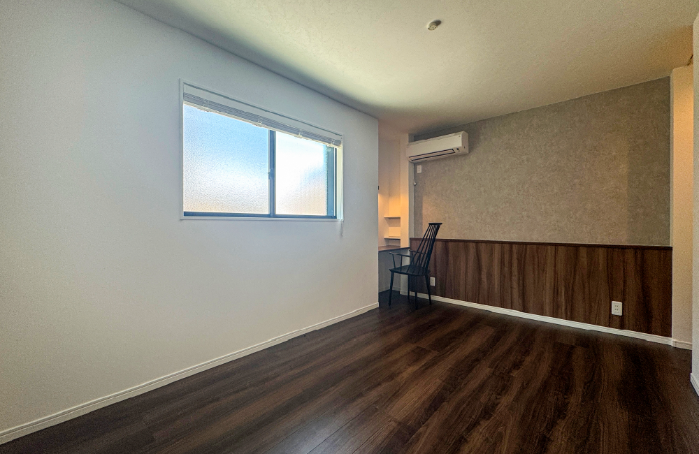 2階の廊下に面したサービスルームは、扉を開けるとゆったりとした空間が広がります。雨の日や夜遅くに洗濯した時も、安心して室内干しできるランドリースペースとしても活躍してくれます。ちょっとした作業コーナーや趣味のスペースなど、暮らしに合わせて自由に使える、うれしい空間です。