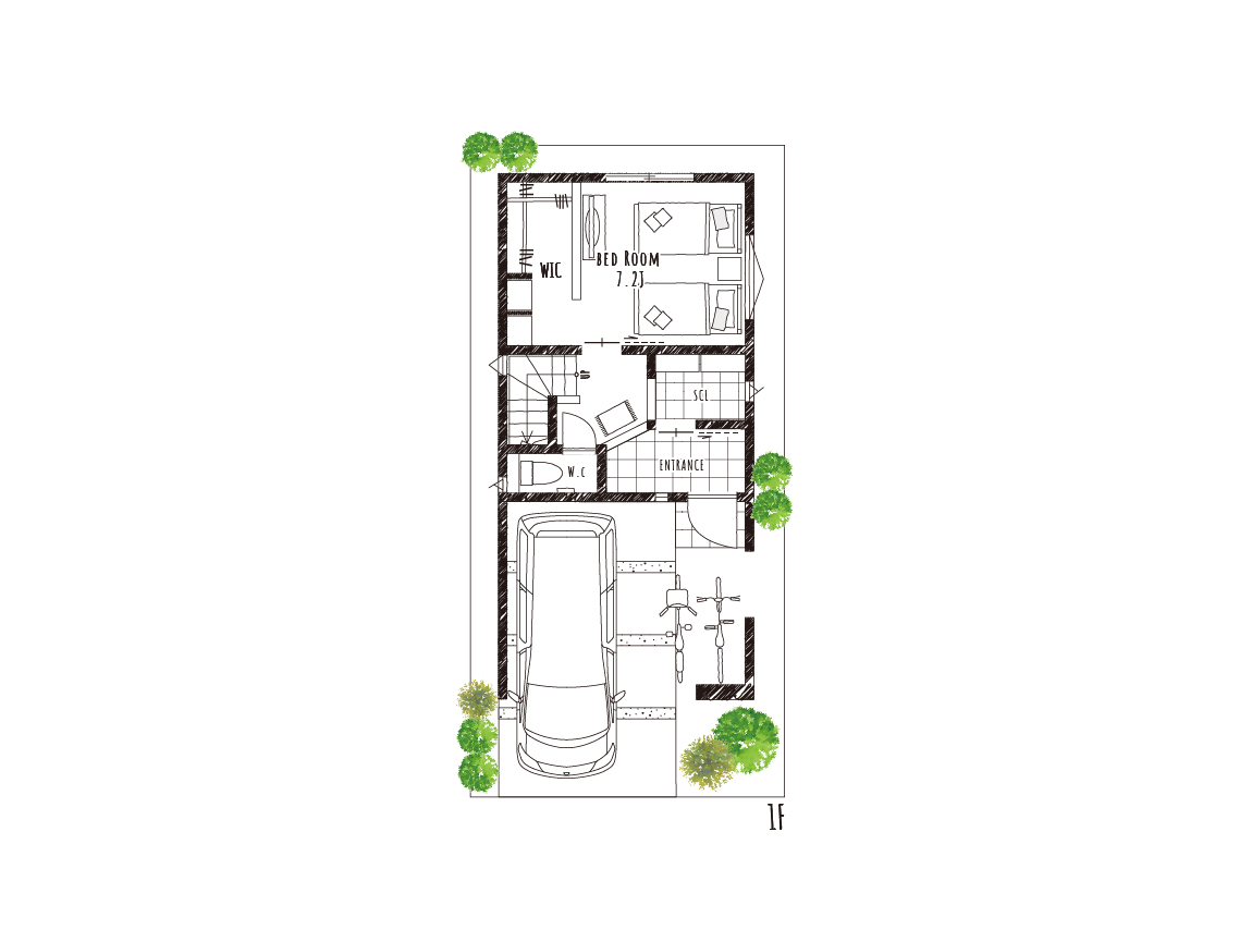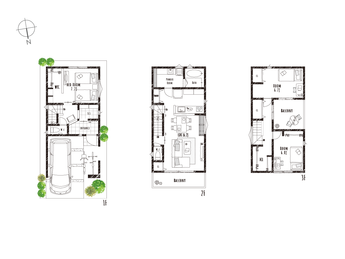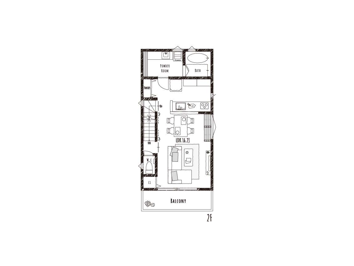 家事がはかどるスムーズな動線と、たっぷりの収納で、毎日を軽やかに過ごせるお家です。1階にはシューズクローゼットや大容量のウォークインクローゼットを設け、靴やコート、アウトドア用品もスッキリ片付きます。2階にはパントリー付きのキッチンに加え、洗面・脱衣室や浴室を一ヶ所にまとめたスムーズな家事動線をプランニング。バルコニーも同じフロアにあるので、洗濯→干すまでの動きもラクラクで、毎日の家事の負担をぐっと軽くしてくれます。3階の共用スペースにはファミリークローゼットと廊下収納を設け、日用品や季節ごとのアイテムまで無駄なく収納できます。家事に追われることなく、心にも時間にもゆとりが生まれ、家族との団らんや自分の好きなことを楽しむ余裕が持てる、そんな暮らしを叶える住まいです。