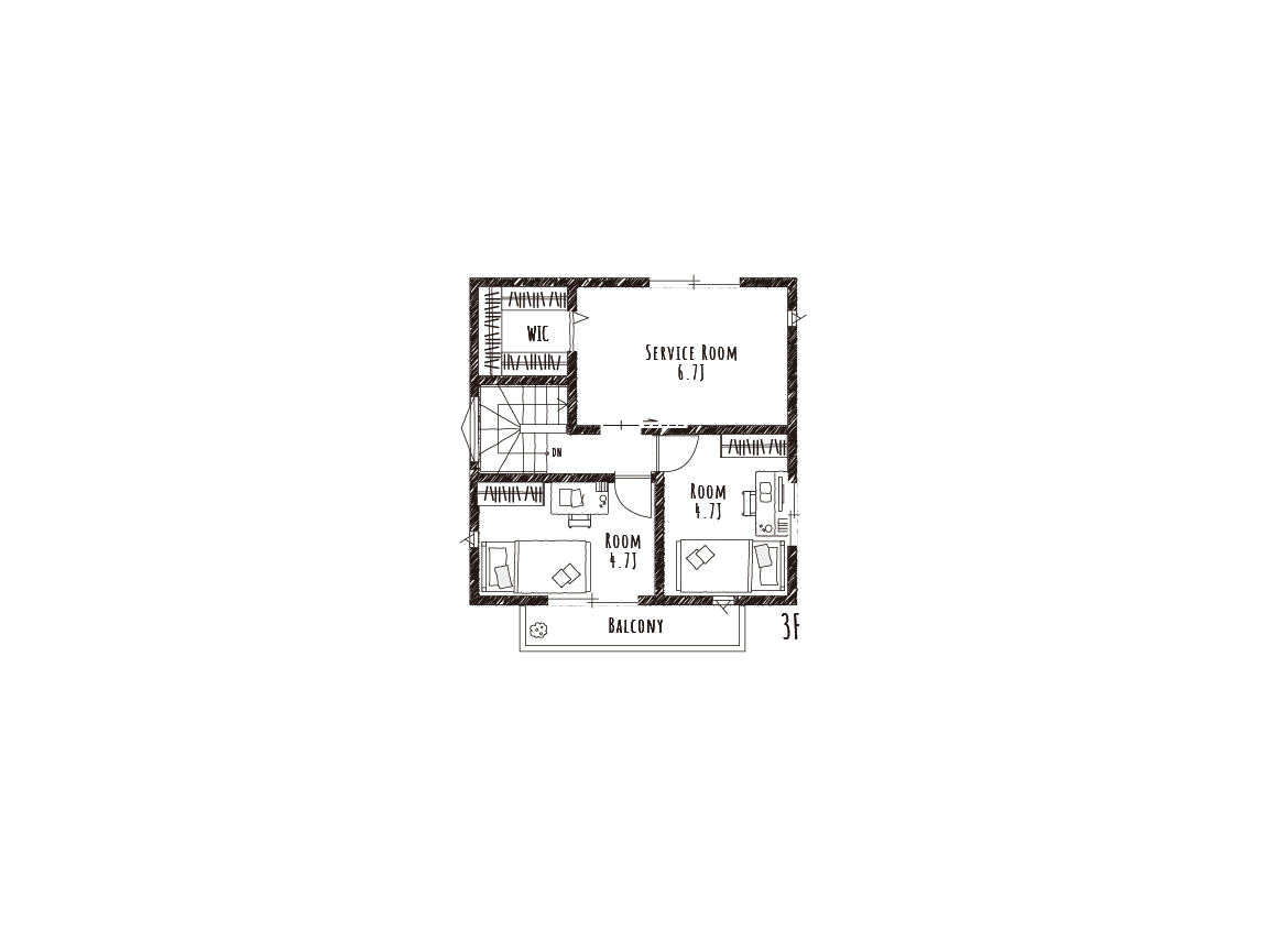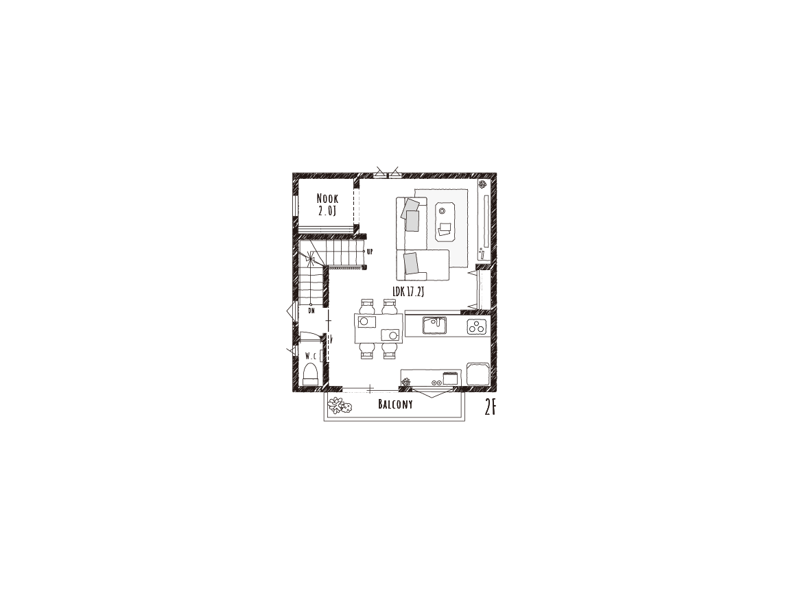 淡いグレーと深みのあるブラウンでまとめた住空間が広がる、心から安らげる落ち着いた雰囲気のお家です。リビングにはやわらかな間接照明の光が灯り、家族がくつろぐ時間をやさしく包み込みます。また、一角にはほどよくこもれる小上がりのヌックを設け、穏やかなひとときを過ごせる場所に仕上げました。3階へと続くリビング階段にはルーバーを一部取り入れ、光と視線が抜けることで空間に開放感と広がりをもたせています。キッチンは収納量をしっかり確保しつつ、カウンタータイプのカップボードや上部に棚を設けることで「見せる収納」も楽しめるとともに、使い勝手にも配慮しています。ダイニングやリビングとの距離も近く、料理をしながらでも家族とのつながりを感じられます。家族の時間も自分だけの時間も大切にできる住まいです。