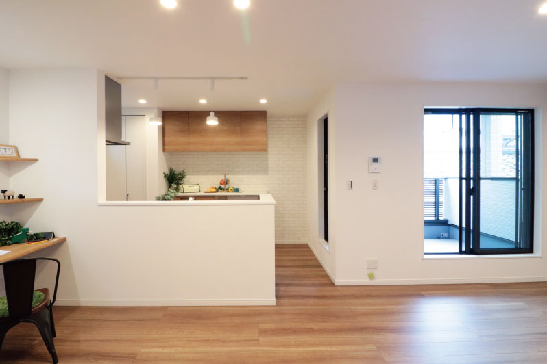 南東に採光部分を確保したことで、旗竿地とは思えないほど明るいLDKになりました。
