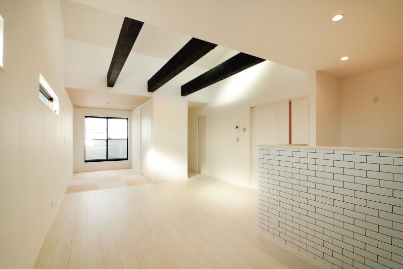 LDKの一部として使用できるよう、あえて扉を付けなかった和室。LDKからの横の広がりを感じつつ、子供の遊びスペースや家事スペースとしてマルチに使えます。