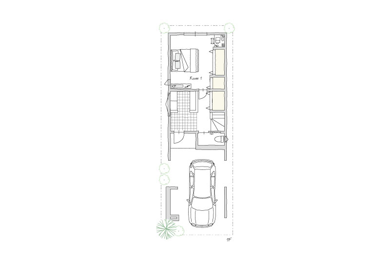 断熱等性能等級4の取得により省エネ性・快適性を配慮しつつ、家族が自然にコミュニケーションを取れるよう、吹抜けを設け空間に広がりと繋がりを持たせました。生活動線も意識し、毎日の家事を楽にする工夫やご家族のライフスタイルの変化に合わせた可変性のある間取りなど、「あったらいいな」と思えるプラスワンの住まいづくりを意識しました。