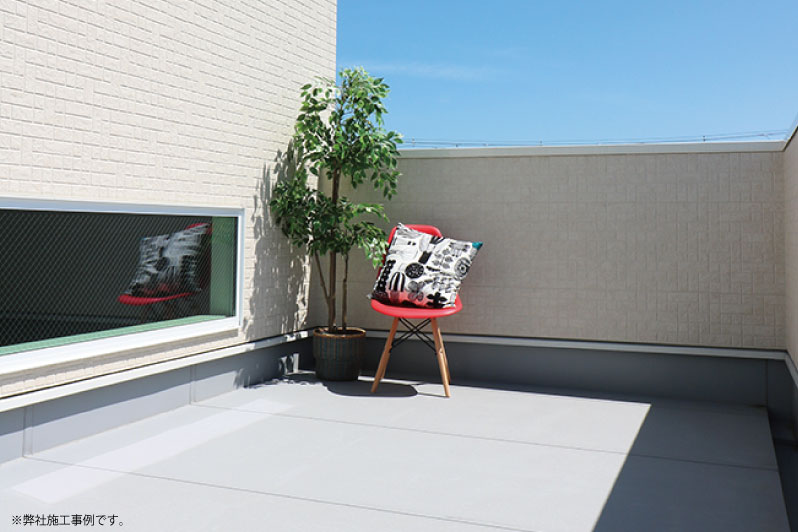 暮らしやすさと遊びゴコロを兼ね備えた空間を意識して設計しました。道路に面している部分の開口をできるだけ無くし、プライバシーを配慮しつつ、ルーフバルコニーや吹抜けで光と風を取り込み、空間に広がりを持たせたました。リビング収納やウォークインクローゼットなど適材適所に確保した収納や水廻り設備のグレードアップ、LDKとゆるくつながった吹抜け書斎など、暮らしやすさを意識。和モダンな琉球風畳を採用した和室、人の目線が気にならないルーフバルコニーなど、家族みんながワクワクする仕掛けをちりばめました。