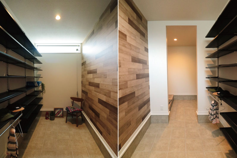 3帖ほどある大きなシューズクロークは、雨風や盗難を気にせずベビーカーや自転車をしまうことができます。愛車やアウトドア用品のメンテナンスも、室内でできちゃう広くて便利なスペースです。