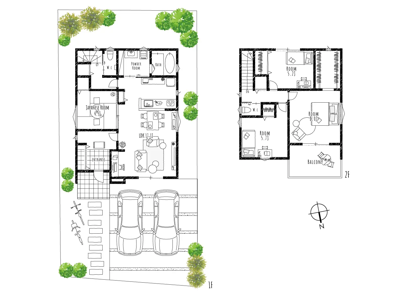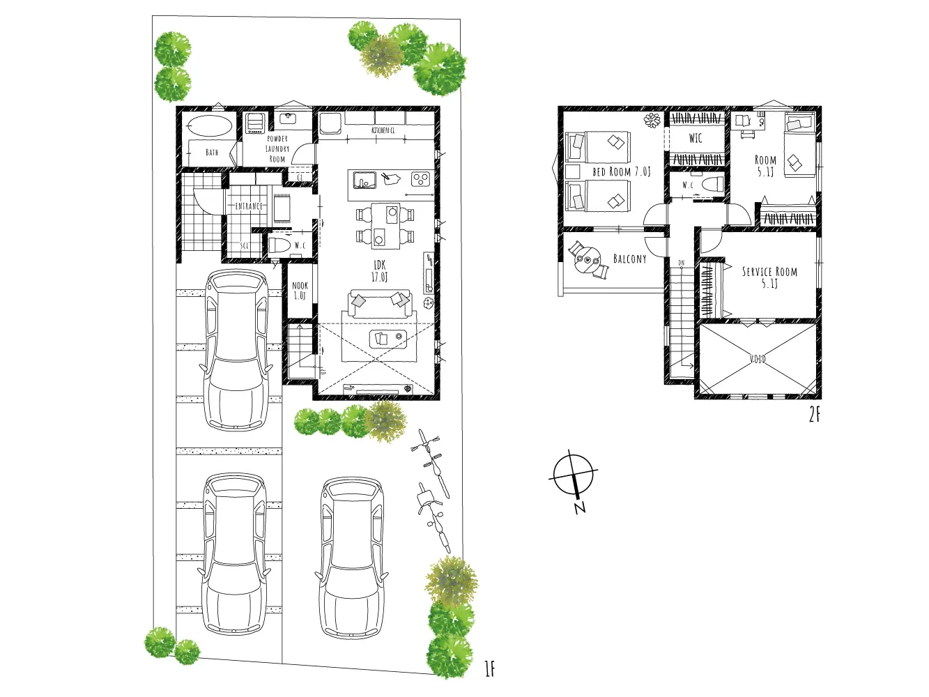 庭付き2階建てや駐車3台など間取りの自由度◎