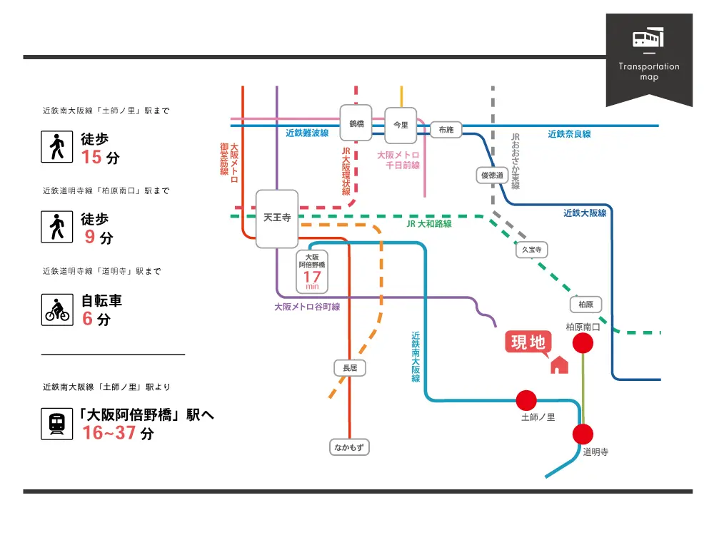 | 主要交通 | 近鉄南大阪線「土師ノ里」駅 徒歩15分 |