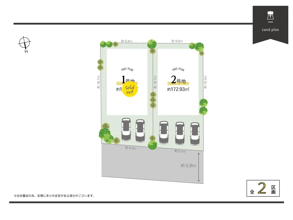 | 建築条件付き | 本物件は建築条件付売土地です。本物件の売主と買主は、土地の売買契約の締結後2ヶ月以内に建物の工事請負契約を締結する。この期日までに両者が工事請負契約の内容に合意できないときには、本契約は白紙解約することとし、売主が買主より受領済みの金銭は速やかに返還するものとする。 |