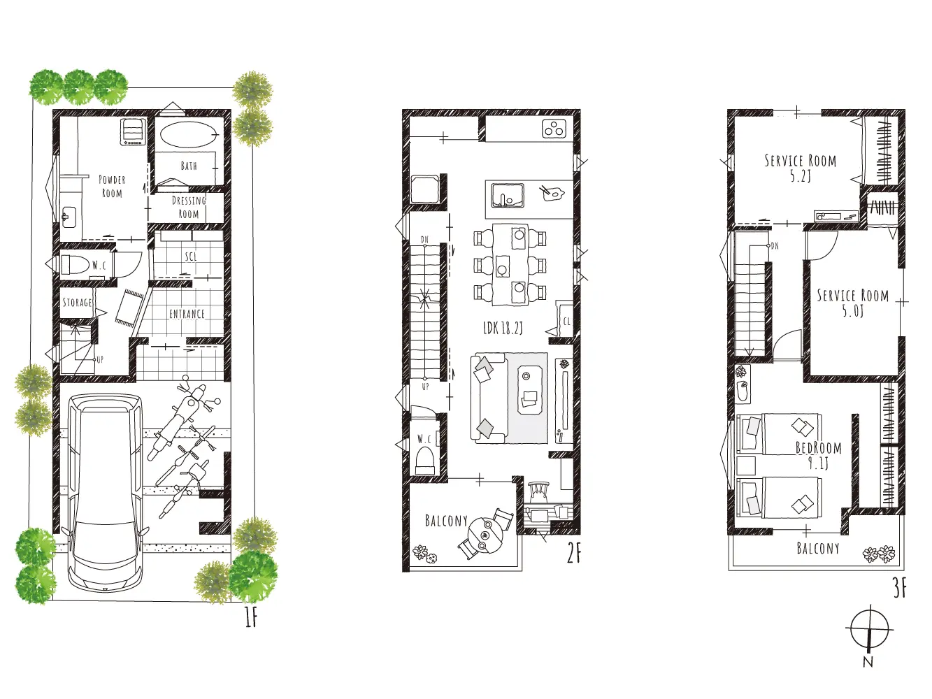 | 延床面積 | 1号地/102.00㎡(30.85坪) 2号地/101.43㎡(30.68坪) |
