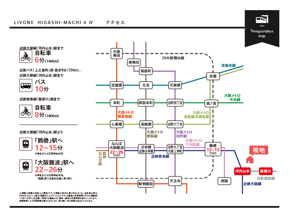 主要交通 近鉄大阪線「河内山本」駅 自転車6分(1400m)