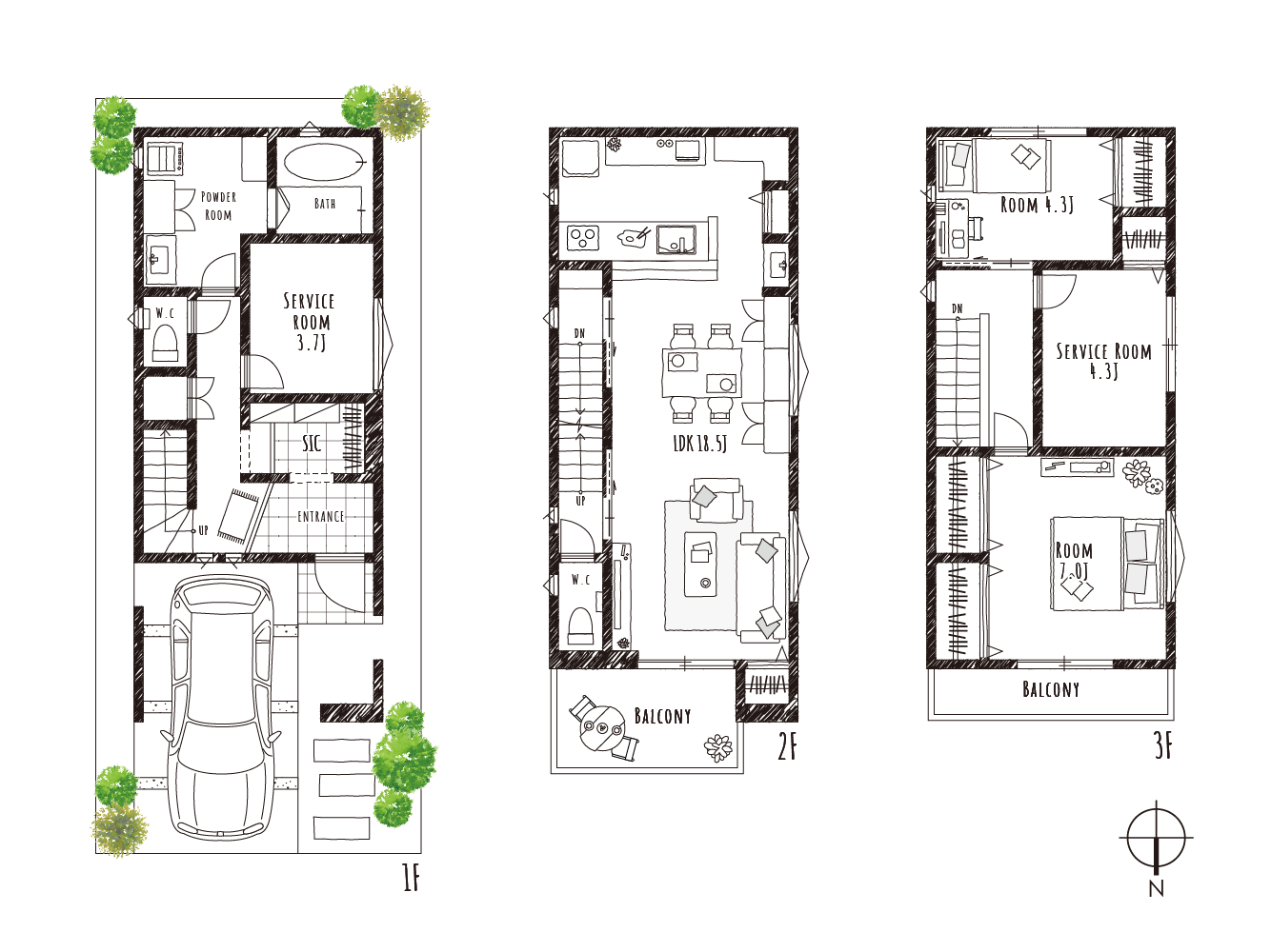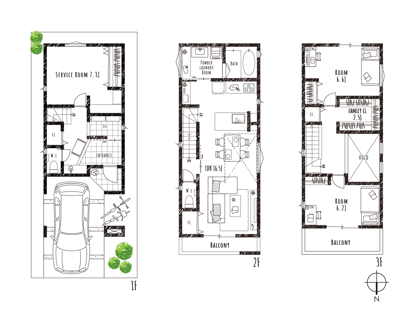・吹抜けや2階水廻りなど間取りの自由度◎