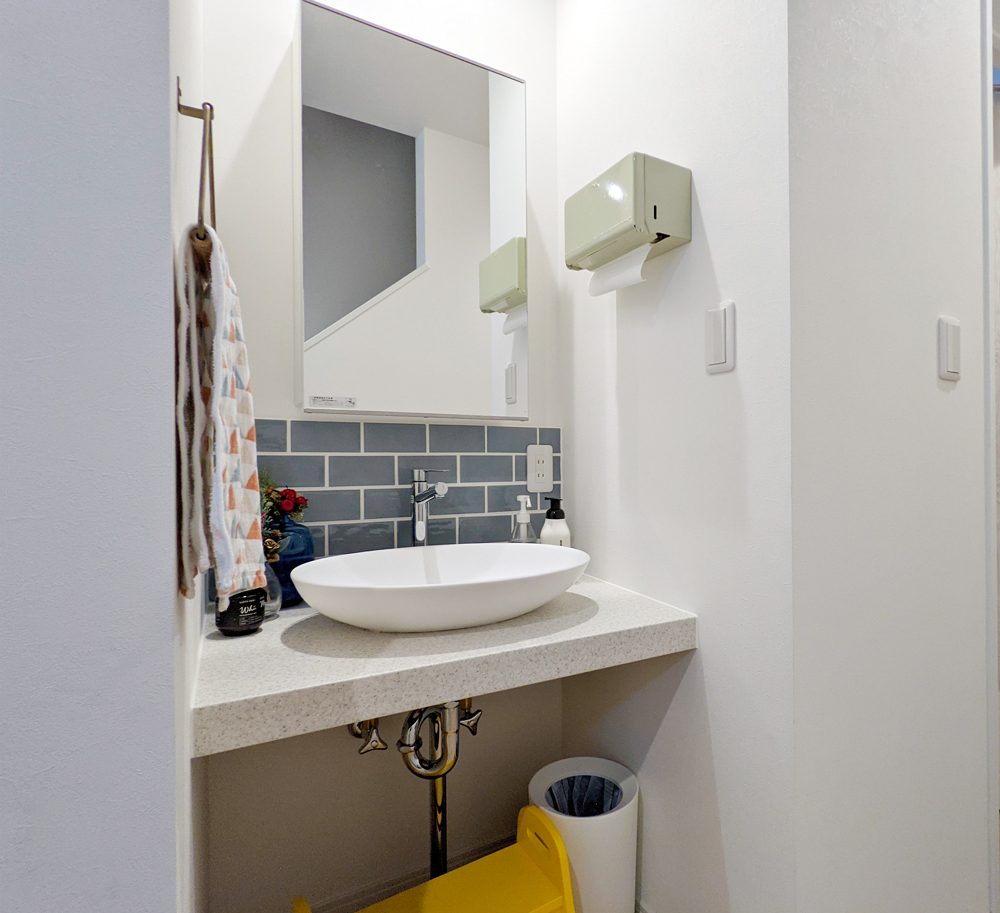 奥様)最初に、飾りたいものや、収納したいものを決めてからお家づくりを進めていきました。好きなものに囲まれる暮らしが良いなあと思い、お家の中に絵をたくさん飾りたかったので、素人でも3Dでお家を作ることが出来るCGソフトを使用して、どの位置に飾るのが良いかなあと考えながら、実際に飾る絵も並行して探したりしていました。カウンタースペースに使用した海外クロスは、どうしても使いたくて、まだ契約もしていない段階で購入しましたね(笑)収納に関しても、既に持っている掃除機や衣装ケースのサイズを測って國近さんに相談したら、うまく収まるように提案してくれました。収納するものによって、扉をつけたり、棚板を細かく入れることで、使い勝手も良くなりました。あとは、猫と亀を飼っているのでペットのお世話がしやすいお家になるように考えました。階段下のデッドスペースを猫のトイレスペースにしたり、亀の水槽のお手入れを考えて、洗面室とは別に手洗いスペースを作ったり。おかげでお世話がとても楽ちんになりました。