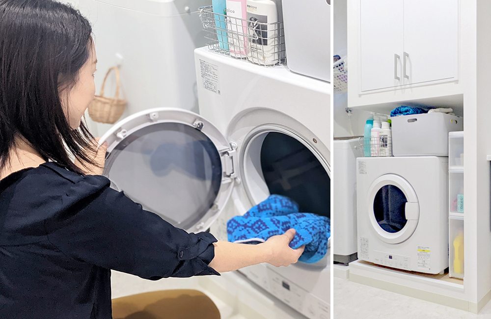 乾太くんを造作棚の下に設置したので、奥にある洗濯物の取り出しもラクラク
