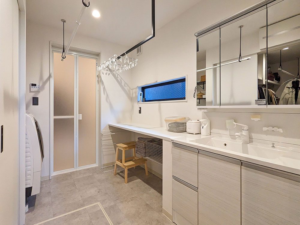 洗面スペースが一体となった、約3帖のランドリールーム。