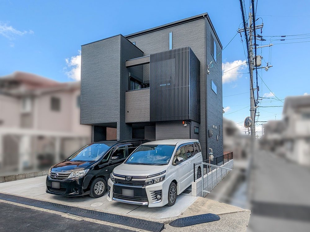 どの角度から見てもかっこいい、ブラック×ルーバーのおしゃれな外観。