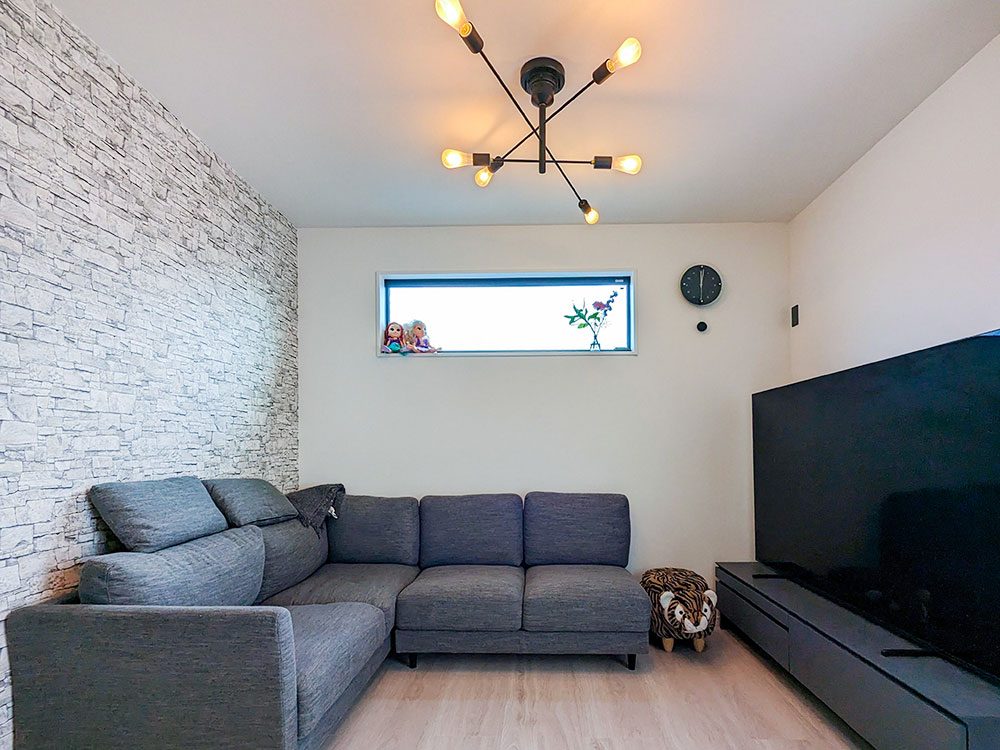 奥様)ランドリールームと収納量かな。とにかく洗濯の回数が多いので、一か所で済ませたくて。乾燥機も併用していますが、洗って、干して、ハンガーのままクローゼットへ。洗濯がすごく楽になりました。収納は、部屋中がスッキリ片付けられるように、全部しまえて、隠せるように多くしてもらいました。あと、キッチンの折下げ天井やスイッチニッチにもこだわりましたね。照明などのインテリアは、中村さんが提案してくれたのですが、どれも私たち好みで。かっこいいし、使いやすいし、お気に入りです。