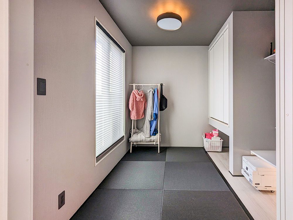 キッズスペースとして使っている、キッチン横の和室。料理をしながらでも、子供の様子を見守ることができる。