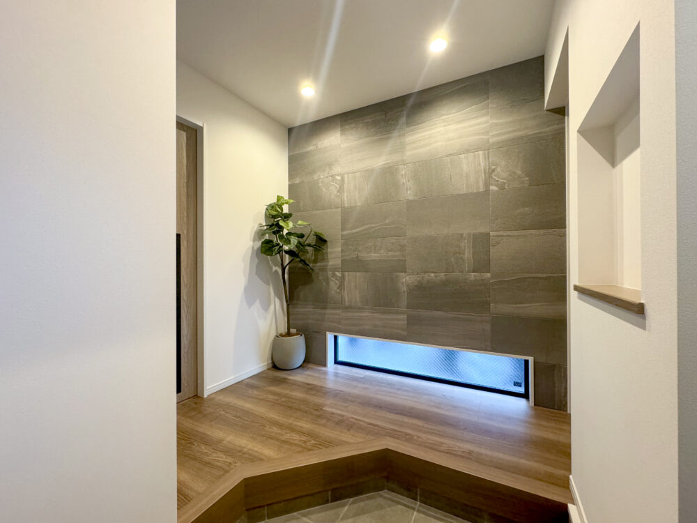 玄関に設けた、湿気やにおいを吸収できるエコカラット
