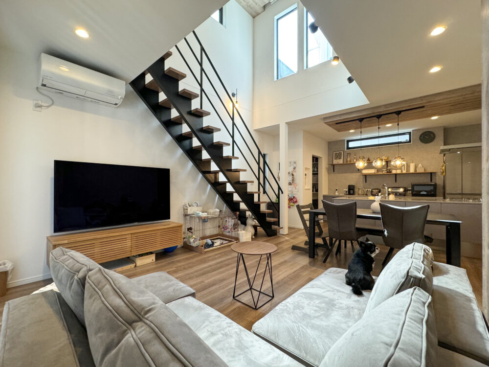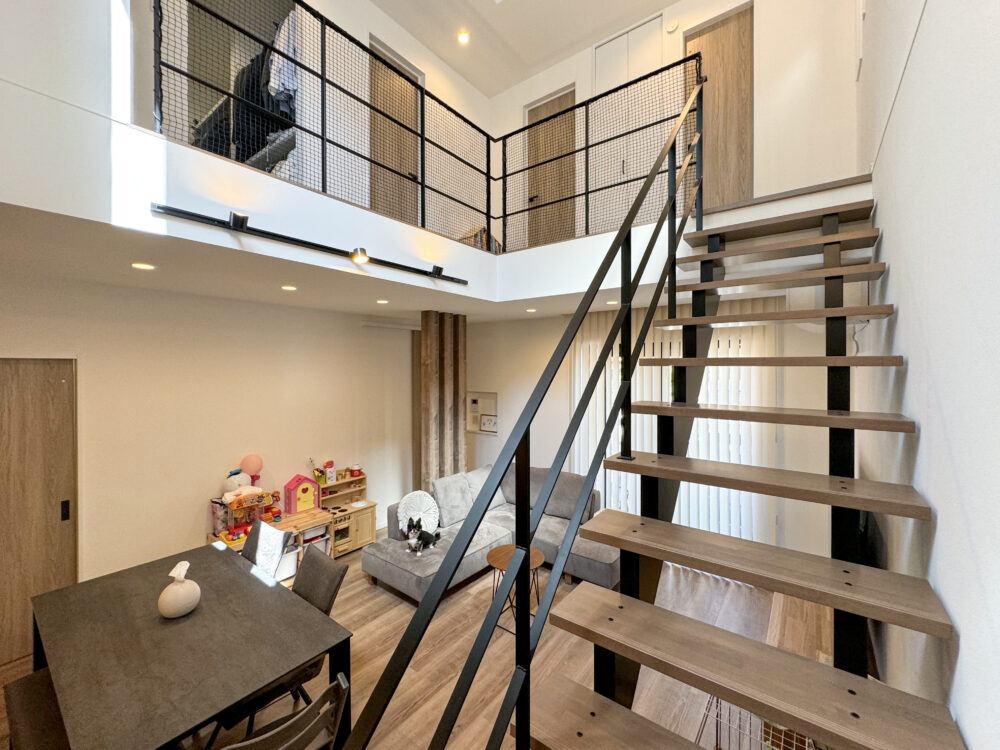 こだわりのスケルトン階段。LDKには、南側の大きな窓から明るい光が降り注ぎます。