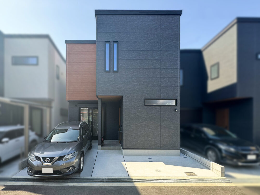 色合いにこだわった、ブラック×木目調のかっこいい外観