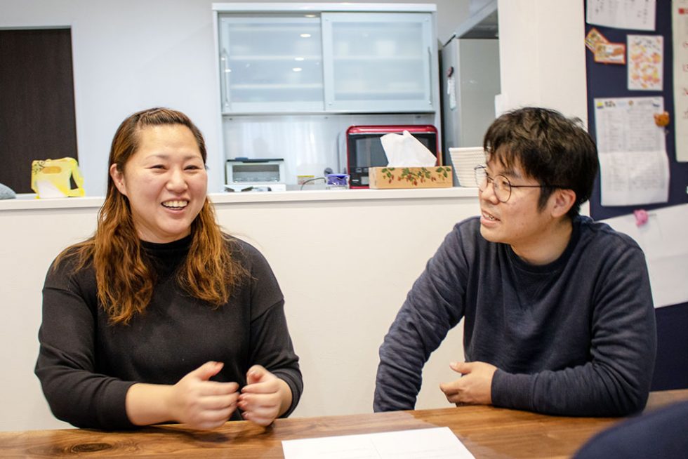 マンションを見に行った帰りに、たまたまこの土地を見つけて。場所もいいし、すぐに電話しました。本当に軽い気持ちで、買えたらいいねって。すでに間取りが決まっていたのですが、まだクロスが選べることや、変更できる所も含めて説明してくれて。できないと思っていたことができると聞いて、夢が膨らみましたね。調べて出会ったわけじゃないのに、すごくいい会社さんと巡り会えたんだなって。その時には、2人の中でエイワハウジングさんにしようって決まってたんだと思います。後日、モデルハウスを見に行って、ローンが通れば買うから安心してって杉村くんに伝えました(笑)。