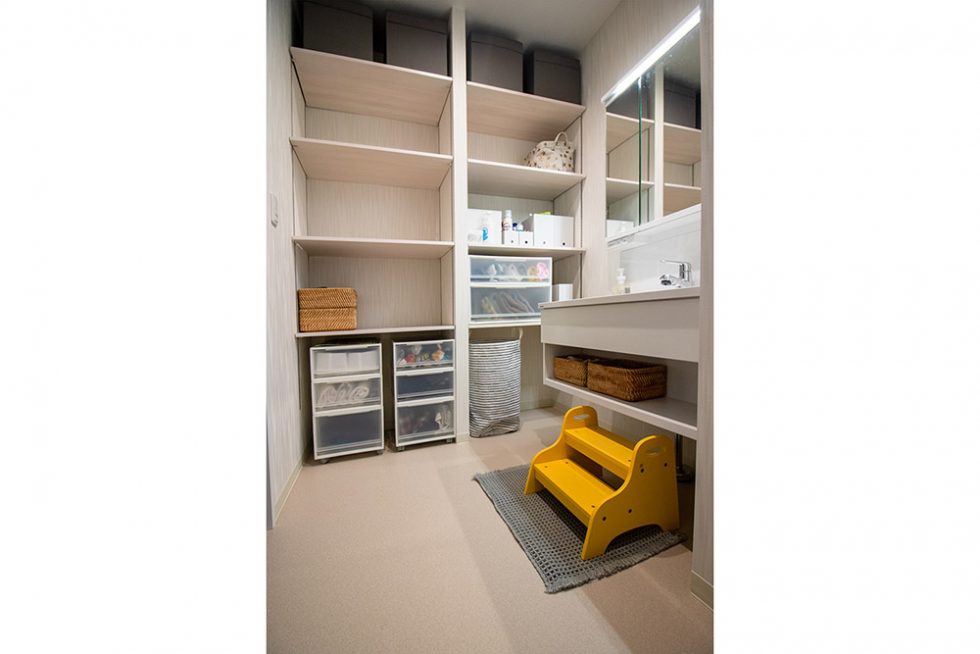 賃貸と違って、必要な場所にたくさん収納があるのも気に入っています。シューズクロークは玄関がスッキリできて、見えるところに物がないのがすごくいいです。洗面室にも収納があり、広いので、子供はそこで着替えています。したいことがしたい場所でできるようになり、暮らしやすくなったと感じています。