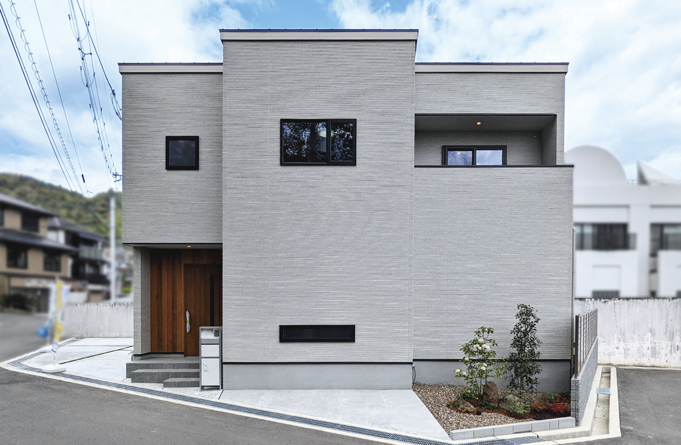 落ち着いた印象の中にも品のある、スタイリッシュでお洒落なライトグレーの外観です。