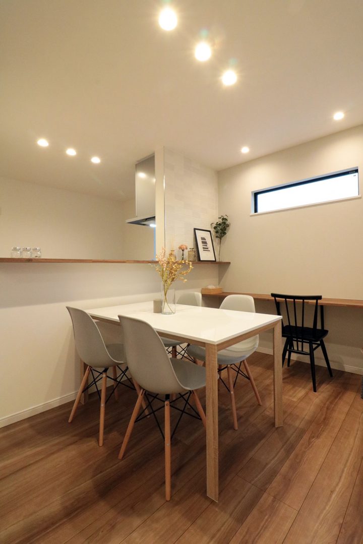 ダイニング横のカウンターはお子様も勉強スペースや家族のPCスペースとして。