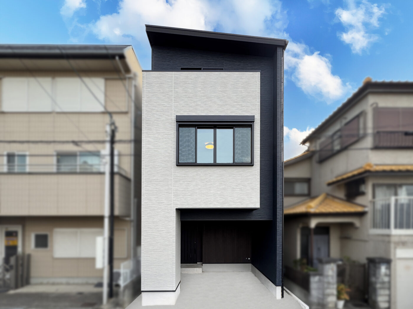 土間空間をたっぷり取った、お客様とご家族で分けられる2way玄関。