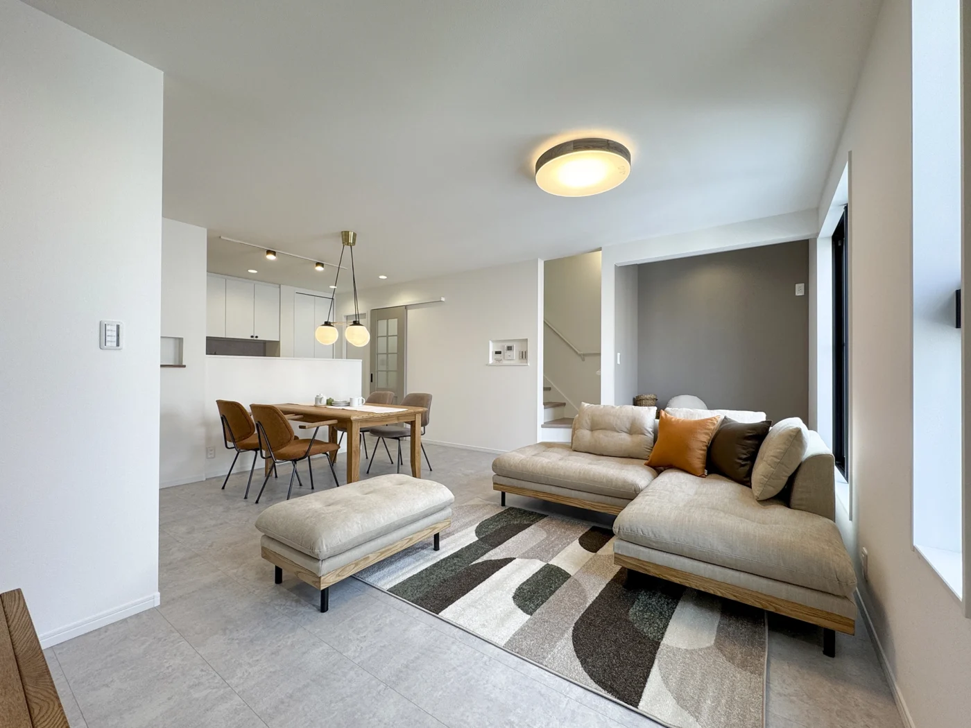 ホワイトをベースに、ミッドセンチュリーデザインをベースにした家具を使用し、モダンな雰囲気を取り入れました。