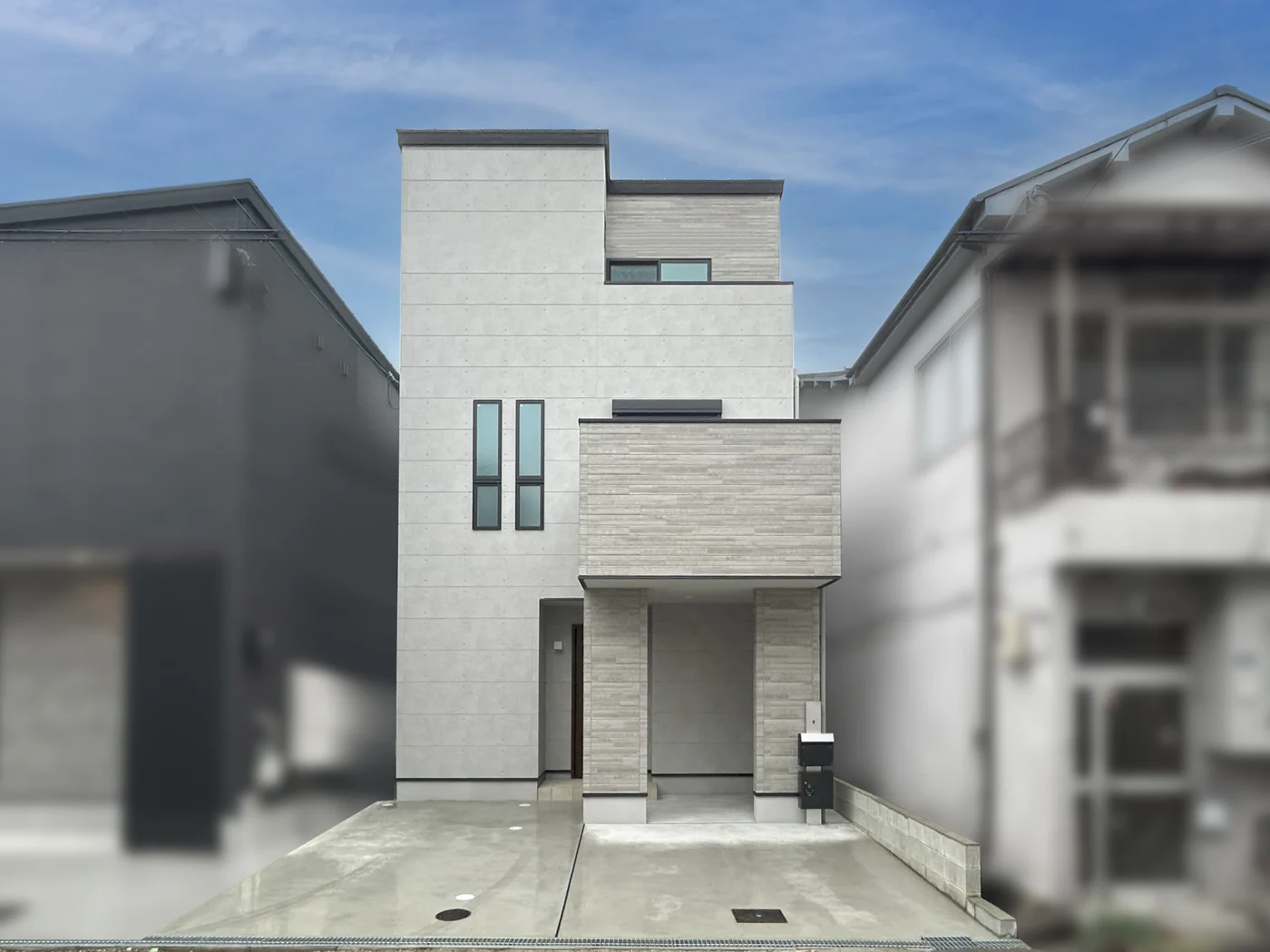 ライトグレーをベースに木目調をアクセントで取り入れた、可愛くなりすぎないカジュアルな外観。